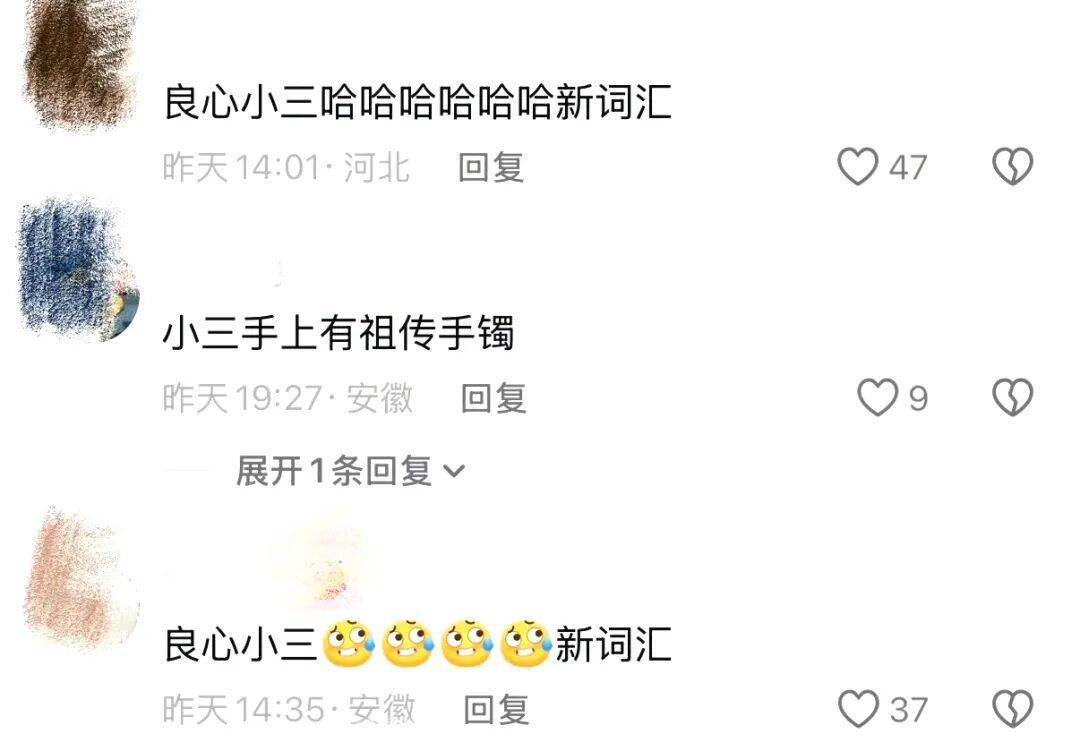 一句我从没要求他回家离婚,算不算良心小三,瞬间成为新的造句模板,网友们纷纷模仿。全网很快开启「良心文学」二创潮:“我上班从没准点下过班,算不算良心牛马?”